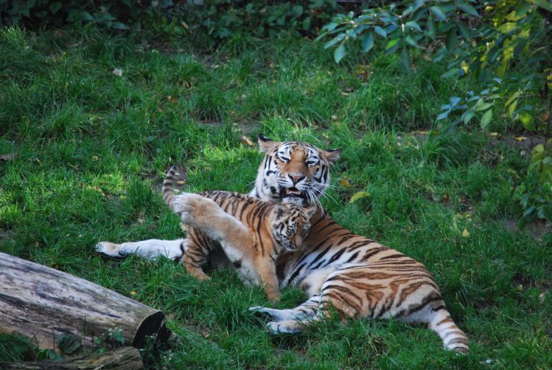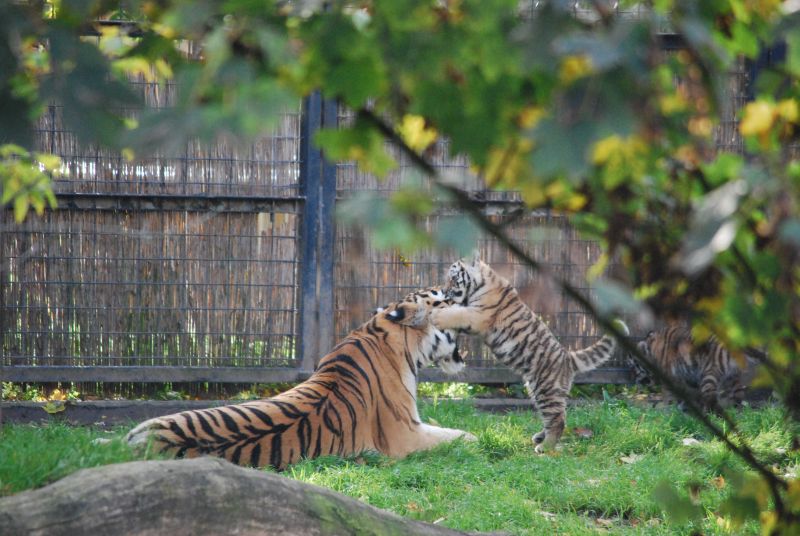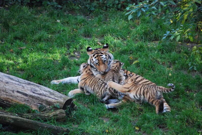 Der Zoo hatte in letzter Zeit viel Pech, erst hatte das Tigermännchen eine Tierpflegerin tödlich verletzt, worauf das Tigermännchen erschossen worden ist, dann hat ein frühreifes Männchen aus dem letztem Wurf die eigene Mutter geschwängert. Dies ist insbesondere für den späteren Verbleib der Jungen, von Bedeutung. Nichts desto trotz, die kleinen sind super süß und die neue Attraktion im Kölner Zoo. Auch die Tigermama liegt nicht einfach träge herum, sondern springt munter durch das Gehege.
