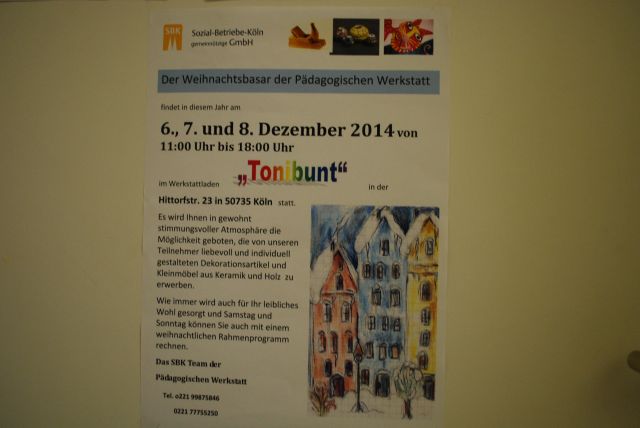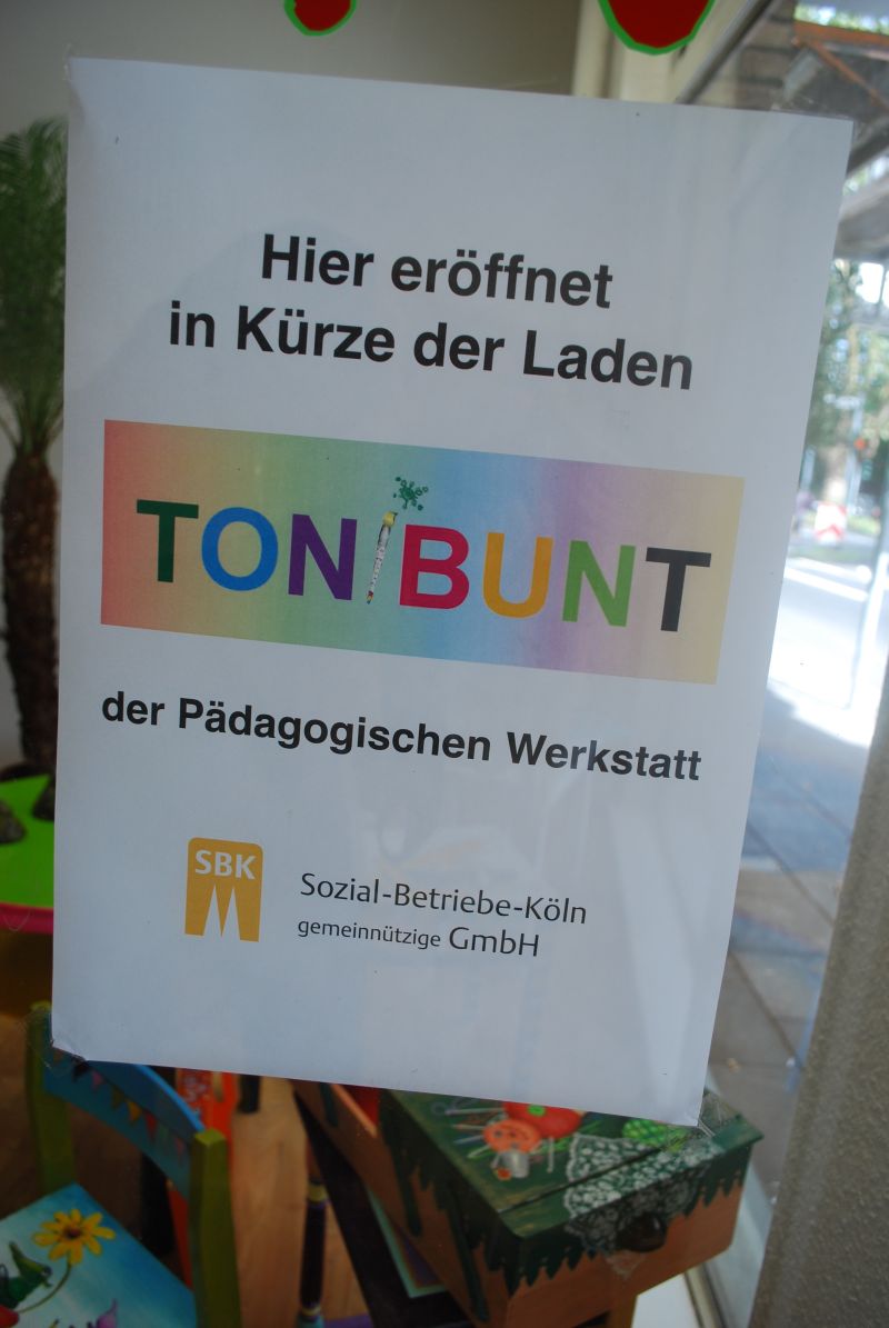 Die Pädagogische Werkstatt der SBK (Soziale Betriebe Köln GmbH), eröffnet mit „TONIBUNT“, in der Hitdorferstraße 23 einen eigenen Laden.