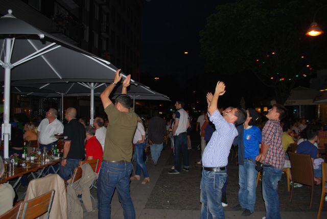 Als wir auf dem Platz ankamen, führten die Italiener schon 2:0……da hatte Joachim heute morgen in der Pressekonferenz noch etwas ganz anderes versprochen. Wir hatten Glück und haben noch zwei Pätze vor dem Rossini gefunden.