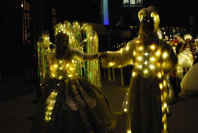 Heute habe ich endlich meine Weihnachtsgeschenke gebacken und stand den ganzen Tag in der Küche, um Original Dresdner Christstollen zu backen, nach einem Rezept meines Vaters. Meinen Arsch brauchte ich nicht huh zu kriegen, denn die Familie Zabaione, ist international und wir haben schon so manches Familienfest mit und ohne Kopftuch zusammen gefeiert. Gerade noch rechtzeitig, habe ich es dann in den Rheinauhafen geschafft, zu dieser wunderschönen Lichter-Parade, zu der zahlreiche Menschen erschienen sind. Der Weihnachtsmann, Elfen, Kobolde, Feen und Schmetterlinge, sorgten für ein bezauberndes Spektakel.“Veranstaltet wurde die Parade aus privaten Mitteln, des Künstlers Fernando Cézar Vieira` . Vielen Dank! Beitrag und Quelle – Schaut euch die Bilder an!