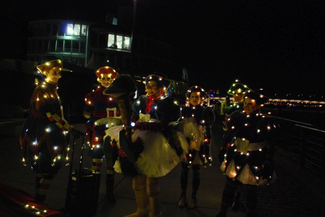 Der Weihnachtsmann kam in der Kutsche, auf der Weihnachts-Lichter-Parade, im Rheinauhafen – viele Bilder!
